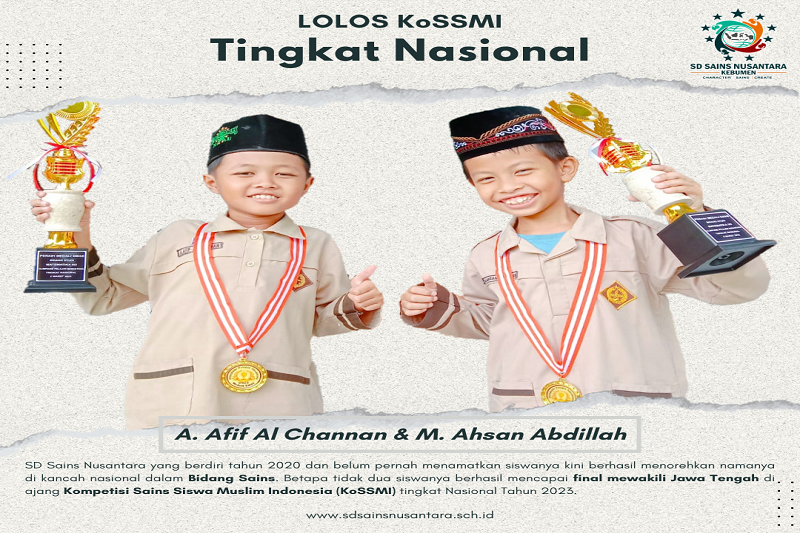 Lanjut BacaDua siswa SD Sains Nusantara wakili Jawa Tengah di ajang Kompetisi Sains Siswa Muslim Indonesia (KoSSMI) tingkat Nasional Tahun 2023.